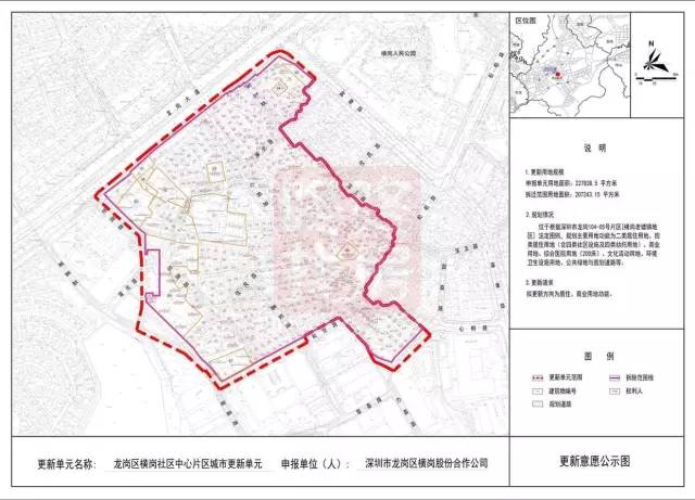 横岗街道横岗社区中心片区意向申报更新单元拆除重建范围面积20.7万平方米,深圳市龙岗区横岗股份合作公司已完成了更新单元范围内房屋及其它地上附着物的更新意愿收集。