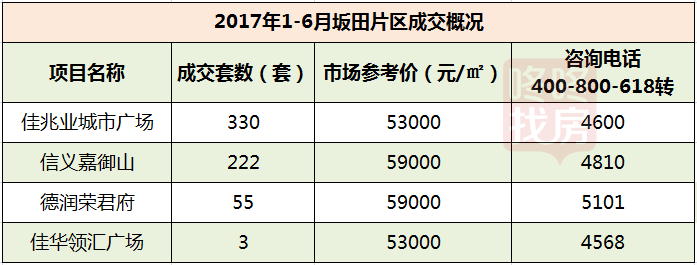 坂田片区上半年成交楼盘相比去年减少不少,这是正常的,整体楼市就比较惨淡。片区内新房整体成交均价在4.6万/平左右。