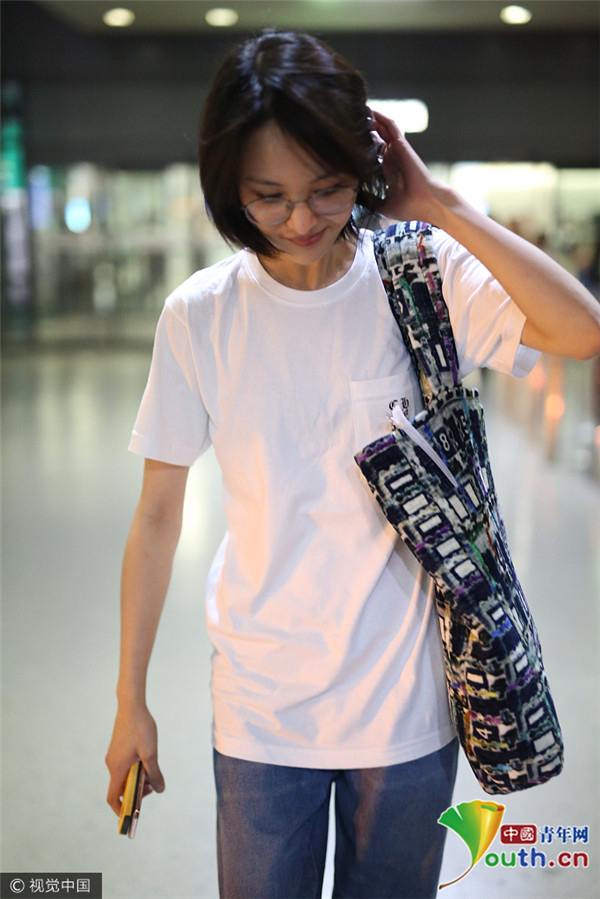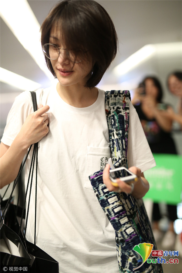 2017年7月24日讯,上海,7月24日,郑爽现身上海机场,留帅气短发,白T配牛仔裤,拖大包小包变“剁手族”,摸尖下巴秀戒指与助理热聊。