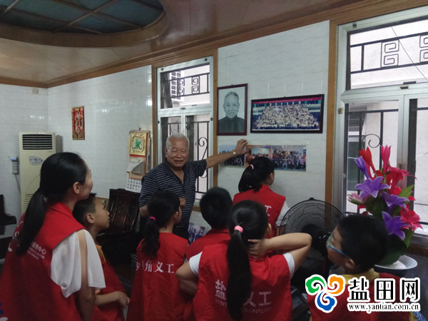 小义工热情活泼的青春气息立马感染到了老人,一句“你们知道原来的中英街是怎么样的吗?”将小义工的注意力吸引了过来。“原来的中英街没这么大,刚刚你们走过来那条环城路过后的地方都是填海盖起来的”。听完后,传来小义工的阵阵惊讶声。“张爷爷,中英街是怎么变成现在这样的呀?”随后,张润添老人讲述起中英街发生的一点一滴变化,一旁的小义工个个听得全神贯注,津津有味,“原来以前的中英街是这样子的,那时候那么穷,大家都是吃什么的呀?”“我不知道界碑在什么地方呢?”“那时候的人为什么要跑去香港啊”,张老也一一解答了小义工们的问题。最后,小义工被东边纵的合照吸引了,张老非常耐心地给小义工介绍东边纵队的历史,鼓励小义工牢记历史,牢记革命先烈。