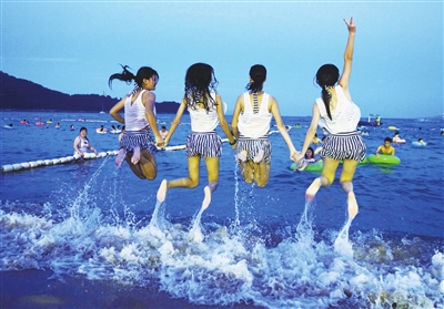 在酷热天气下,更多的市民和游客选择在傍晚来到小梅沙。当夜晚降临,小梅沙度假村内灯火辉煌,如同白昼,人们涌向海滨沙滩、泳场,穿着五颜六色的泳装、比基尼,在软绵绵的沙滩上尽情地追逐玩耍,在清爽的泳场里踏浪戏水。风声、浪涛声、欢笑声交织在一起,人头攒动、欢声笑语。夜深了,人们仍流连忘返,在这自由的天幕下,体会着无拘无束的畅快,身心劳顿豁然舒畅,愉悦情怀由衷而生。他们在充满负氧离子的大自然氧吧里,在美丽的山光水色中尽情欢娱,尽情潇洒,释放激情,纾解压力,绽放青春,放飞梦想。(陈万宜)