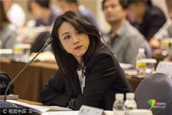 7月25日,第十一届FIRST中国西宁青年电影展创投会在西宁举行,著名影星汤唯和著名电影人施南生、曹保平作为本次创投会的评委出席了评审会。本届影展一共有12部片子入围创投会,现场青年导演一边为自己的片子宣讲一边聆听评委的精彩点评,受益匪浅。汤唯身穿黑色西装亮相,不时托腮展露灿烂笑容,优雅大气。