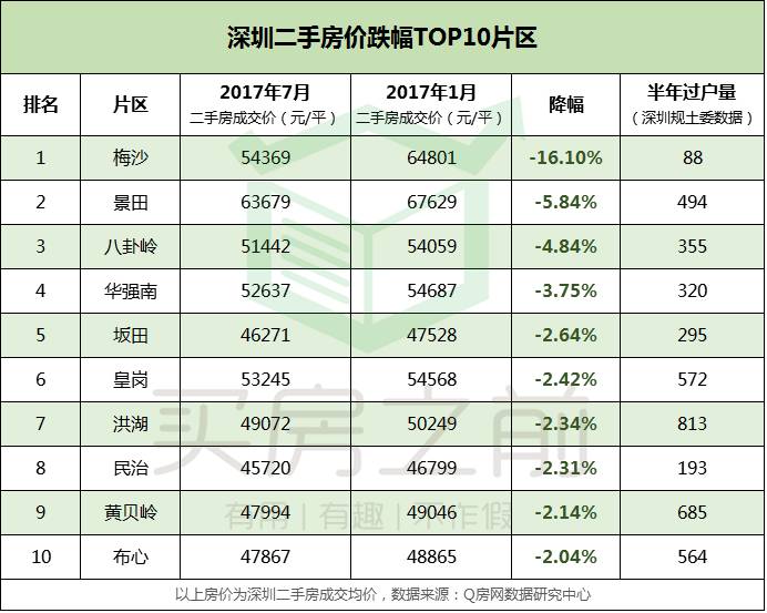 而关外片区只有坂田和民治,都是曾经的热门片区。如今随着市场冷静,热度也稍微降下来了,但总体上跌幅还在可接受的范围内。