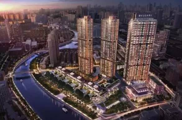 苏州河黄金河段的上海新人文地标,靠近老牌商圈人民广场和南京东路,拥有全国第一座宝格丽酒店,项目塔尖住宅顶层复式和独立别墅的总价都是亿级的。