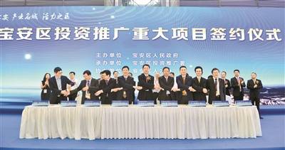 ⑥ 昨天,宝安产业发展博览会在深圳会展中心开幕。当天,宝安区在会展中心举行重大项目签约仪式,12个重大项目落户宝安。