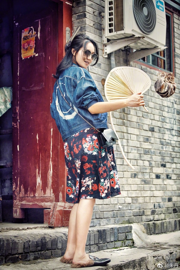 朱丹心情好转逛北京胡同 宽松长裙孕肚明显