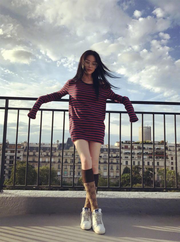7月30日,张馨予通过微博晒街拍美照,并称:“来巴黎进修油画。先享受一个周末,我的求学之路就开始了。”照片中,张馨予身穿红黑条文休闲群,长发飘逸,戴着大大的眼镜,在蓝天白云下随意凹造型,一双大长腿抢镜成功。