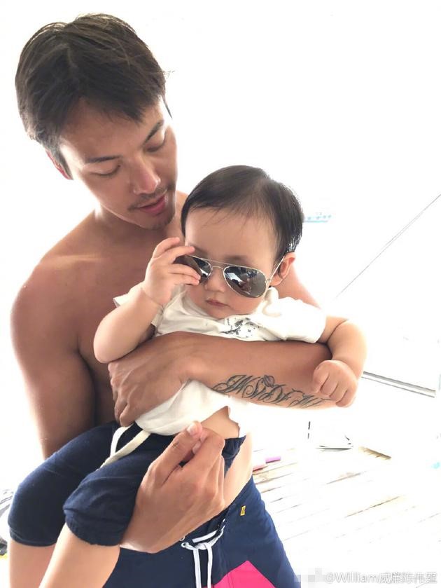 7月30日,陈伟霆通过微博晒怀抱外甥女的照片,照片中,小外甥女戴着陈伟霆的墨镜,胖乎乎的小手扶着镜框,十分的可爱,陈伟霆裸露上身,满脸溺爱的看着外甥女,胡渣肌肉非常的性感,抢镜成功。