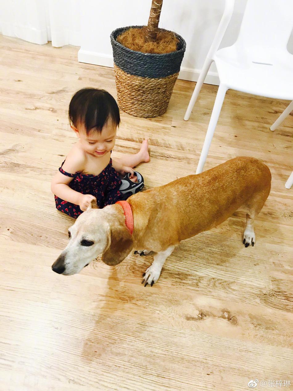 张梓琳晒女儿与爱宠日常 胖妹笑眼弯弯小辫子超可爱