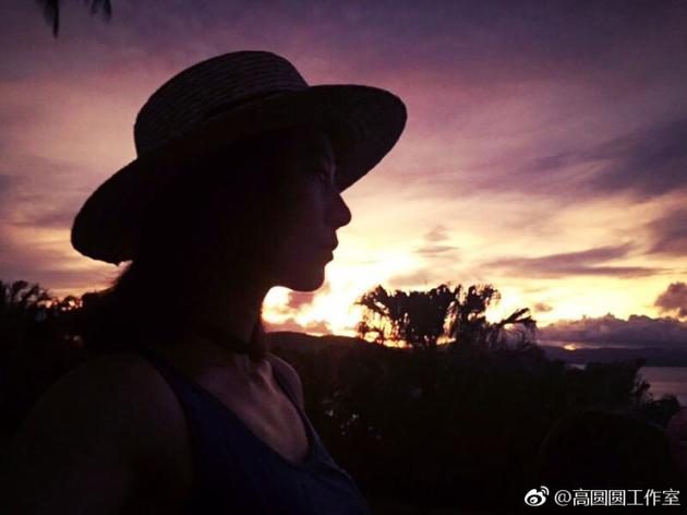 剪影杀!高圆圆夕阳下楚楚动人 侧颜锁骨美到窒息