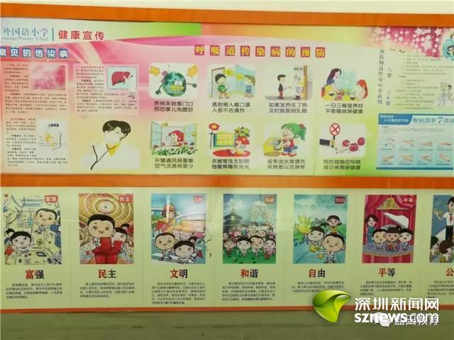 此外,盐田外国语学校利用电子显示屏等创新载体,将创文宣传标语口号不间断滚动播出,截至目前,学校累计制作宣传橱窗10个、大型宣传喷绘4块,张贴宣传画200张、宣传标语30条,通过各类不同形式的载体,传播创文内容,整个创建宣传氛围和效果受到辖区群众的充分肯定。