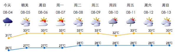 我市阴天间多云,有阵雨或雷阵雨,部分时间雨势较大;气温26-31℃;西南风2-3级;相对湿度65%-95% 。