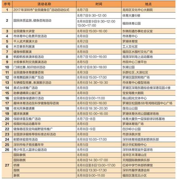 ⑧8月8日,一年一度的深圳市“全民健身日”系列活动又将来了!