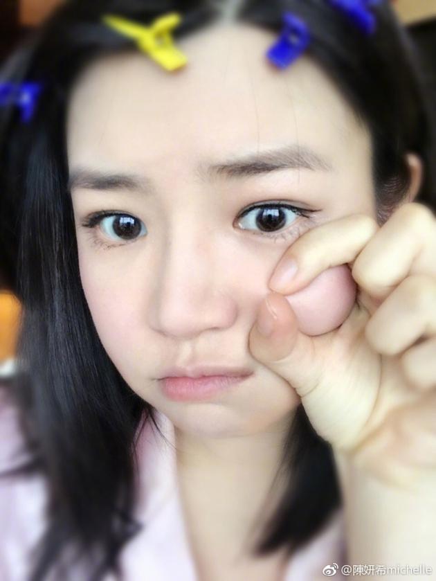 8月3日,陈妍希晒出一张捏脸自拍,配文:“完了完了完了!等下就是我们来了的发佈会,先给你们看一下我发烧成面包超人的样子,看了是不是很饿?”照片中的陈妍希头上别满卡子还在妆发中,白嫩的小脸烧的粉红,温柔可爱。