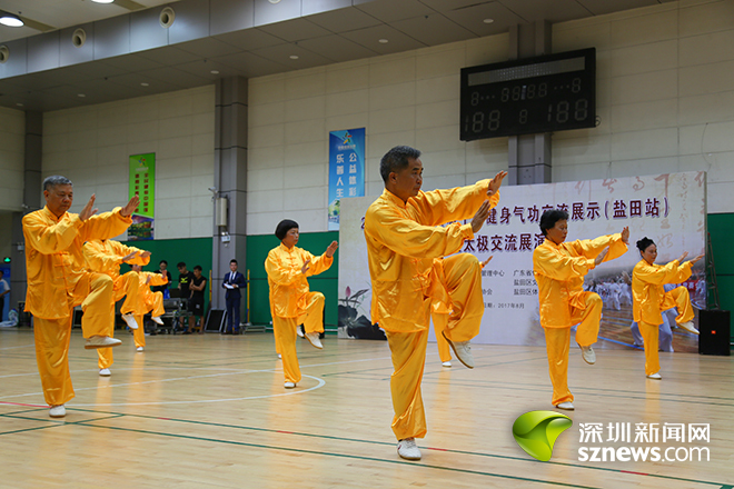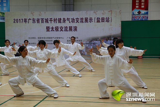 盐田区举办健身气功交流展示比赛暨太极交流展演活动 “每天锻炼太极拳2小时,既强身健体,也有益身心。”倚山太极拳队的表演者告诉记者,该太极拳队成立于2004年,现有队员30名,团队最大的79岁,最小的69岁