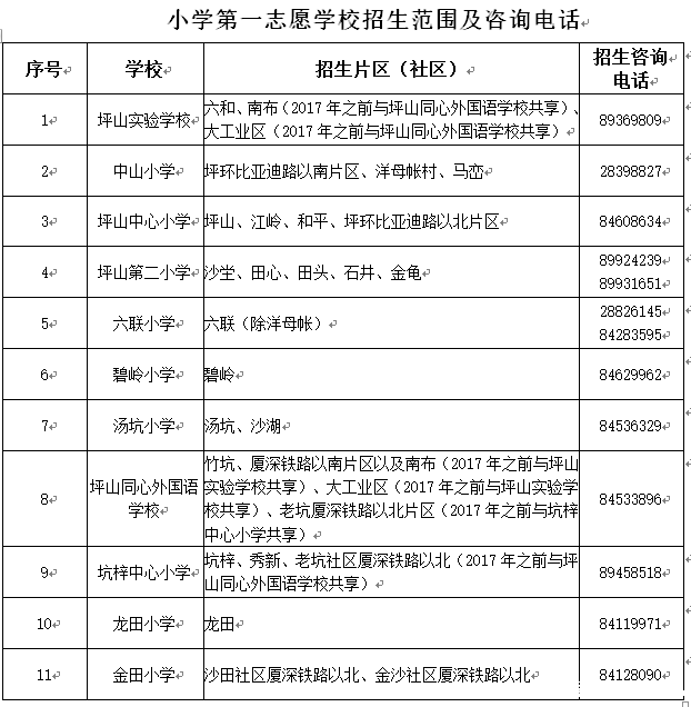 书香小学 | 金龙路以东、白龙路以南、新区大道以东、玉龙路以南、梅龙路以西、民乐路以南、梅观高速以西的范围 | 1-6类 |