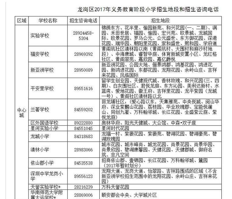 民顺小学 | 人民路以东、布龙路以南、民治大道以西、民安路以北、通菜街以西、民福路以西、民兴街以北、民塘路以东范围,含公馆1866、七里香榭、日出印象、幸福枫景、金地梅陇镇、阳光新境园、绿景香颂、世纪春城等小区 | 28082011 |