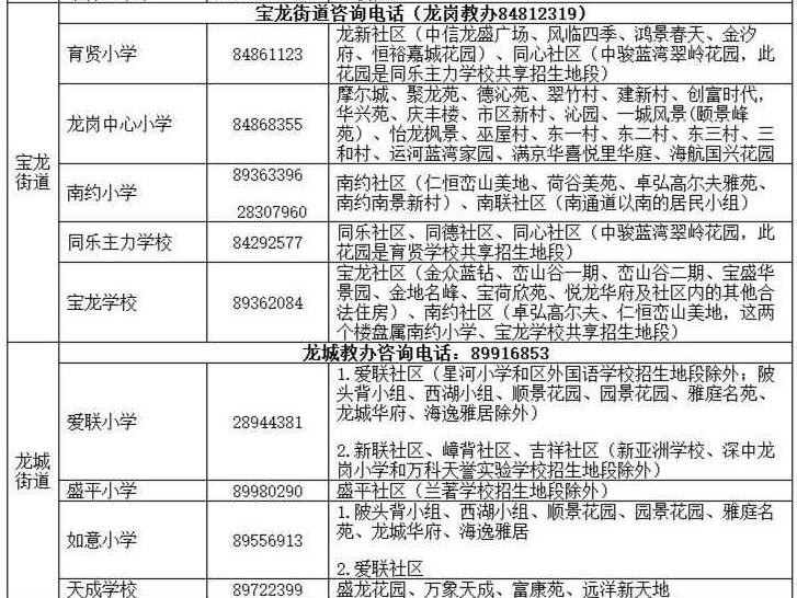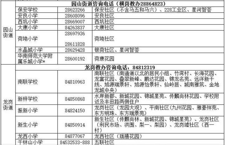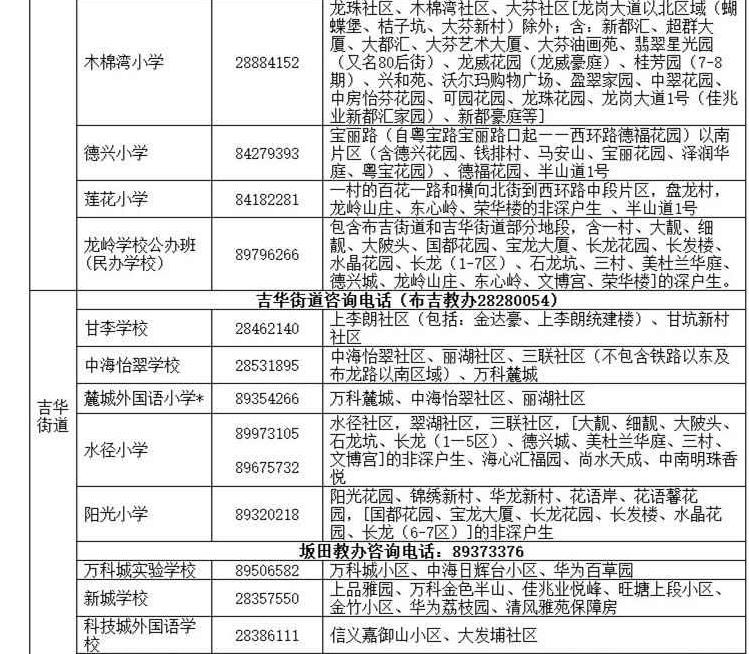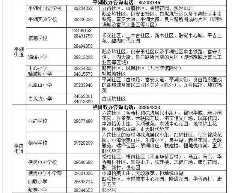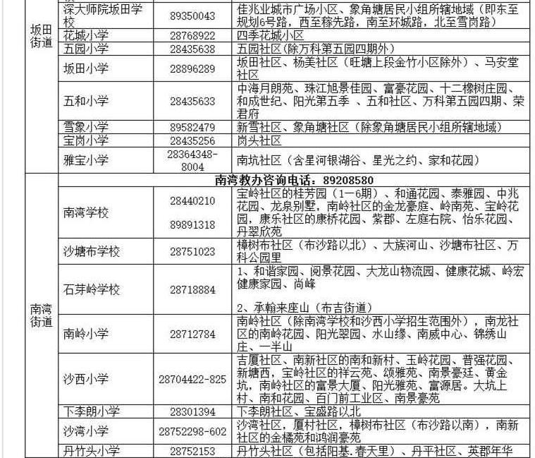 外国语学校 | 塘家社区、凤凰社区、白花社区、甲子塘社区、田寮社区、长圳社区。 | 0755-23199964 |