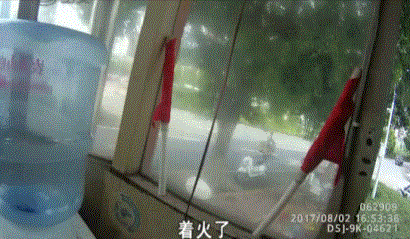 (西乡交警中队民辅警 林冠辉 &刘志标)忽然变大的火势,让我们的“超级英雄”们,下意识的后退了几步,但很快他们又拿起灭火器冲了进去!