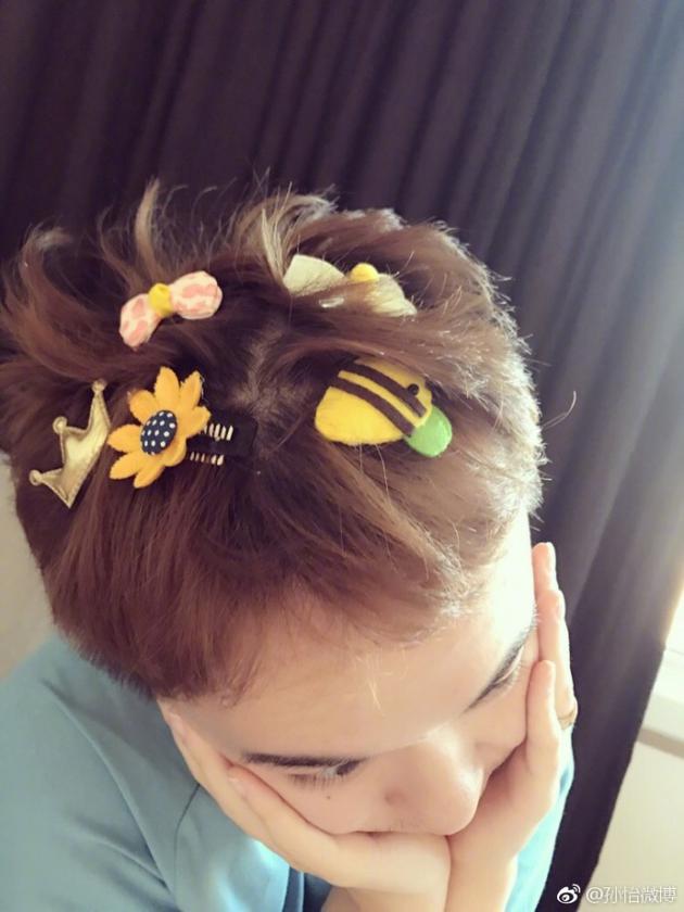 8月6日晚,孙怡通过微博秀恩爱,晒董子健满头发卡的照片,并调侃道:“花一样的男子!”还特意艾特老公董子健,十分的甜蜜。照片中,董子健身穿淡蓝色短袖,双手托腮,亮点是满头的可爱发卡,十分的逗趣。