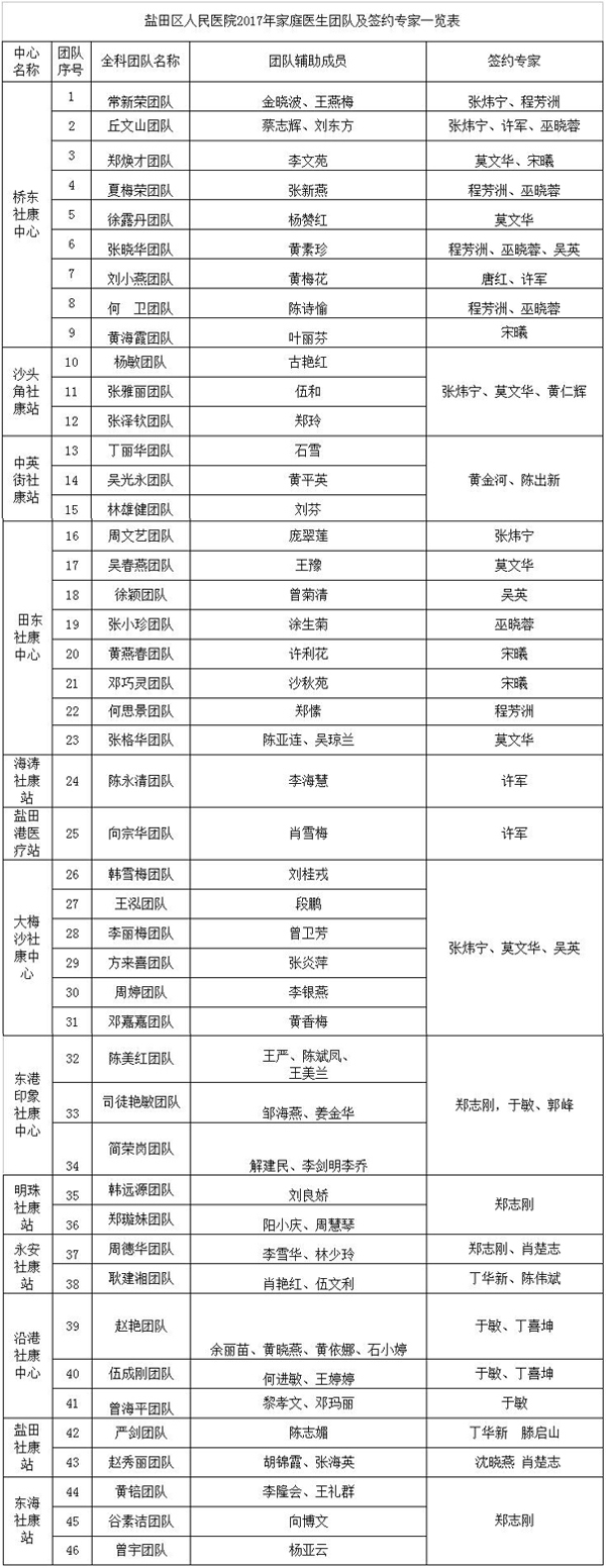 7、盐田区家庭医生团队有哪些医生和专家呢?
