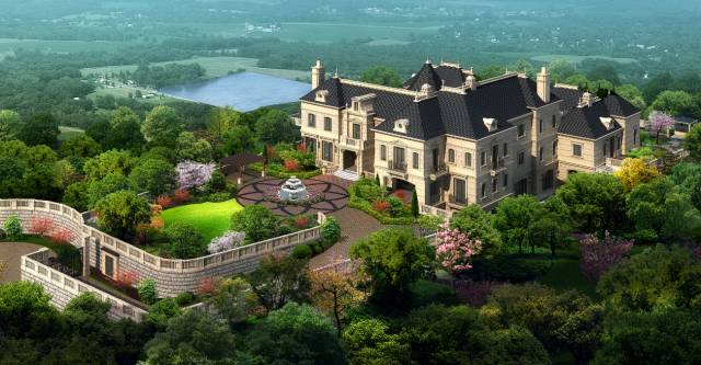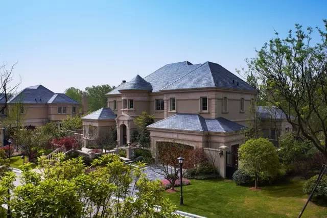 绿城玫瑰园位于南京珍珠泉旅游度假区,有10 万余亩森林公园和 1800 亩高尔夫球场环绕,1900㎡的墅王由三栋法式风格别墅围合,连保姆房都是独栋。