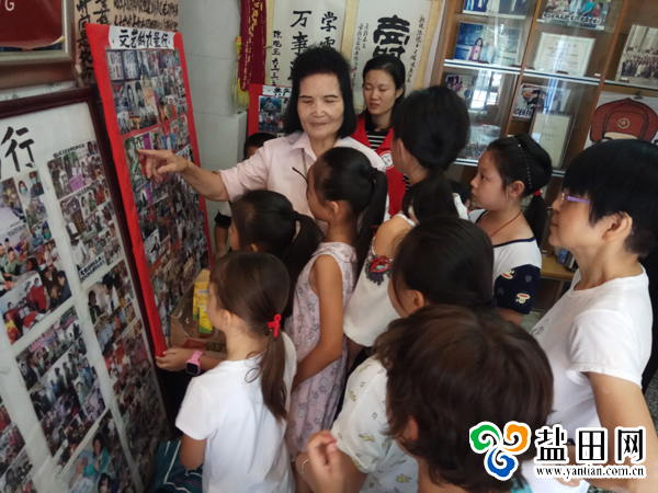 陈观玉老人见小朋友前来很是高兴,领着小朋友们参观一楼的照片墙。“哇,好多照片呀,照片上的小朋友是生病了吗?”陈奶奶皱了下眉头,解释道:“这些是白血病的孩子,以前我经常去看望他们,给他们送吃的,教他们唱歌,现在他们都已经不在了。”“啊?那么小就不在了,好可怜呀!”“是呀,小朋友们你们要好好珍惜现在的生活呀!”小朋友领会地点点头。“奶奶这张照片的人是谁,他在干什么?”“这是我老伴,他在修鞋子,那双鞋子已经补了好几次了,那时我说鞋子那么破了,不要补了,买一双新的,你们猜猜我老伴是怎么批评我的?”小朋友都转动着脑袋瓜子,“噢,我知道,是要节俭。”陈观玉奶奶竖起了大拇指,“对,鞋子可以买新的,但是节俭的思想是买不来的。小朋友你们现在的生活很富裕,但也要学会节俭。”