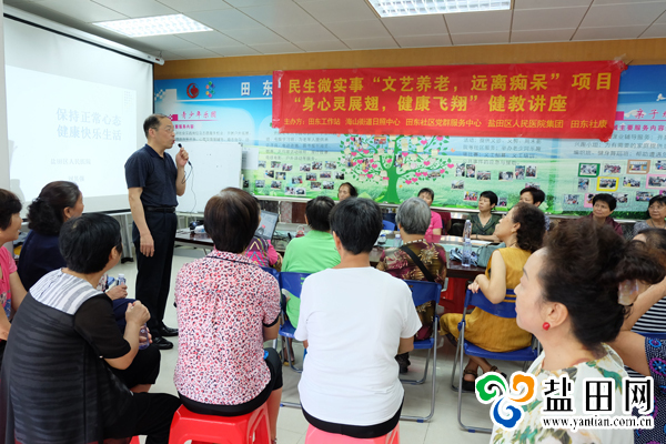 深圳新闻网讯 为进一步全面普及老年痴呆病因、症状、治疗预防方法,提高社区居民对老年痴呆的正确认识和预防心理,创建幸福晚年社区环境。8月9日下午,海山日照联合田东工作站、田东社康中心、田东社区党群服务、盐田人民医院集团开展了“身心灵展翅,健康飞翔”为主题的健教讲座。