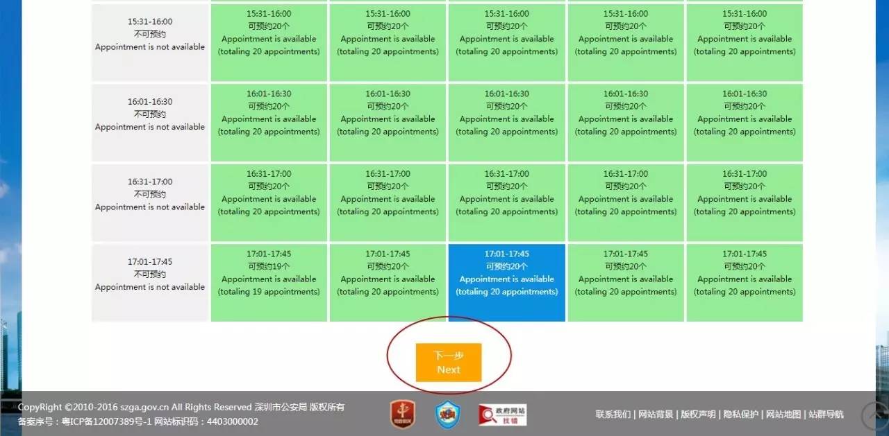 (1)选择预约时间后,点击“下一步”