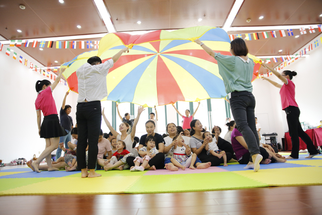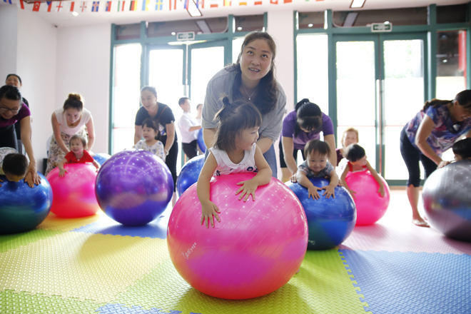 活动别开生面,学前教育专家运用亲子瑜伽的手法,进行视、听、触等感官训练,让家长体验如何和幼儿多一些爱抚、肌肤接触、眼神交流、声音交流来促进幼儿大脑的发育和品格特质的养成。专家从体验引出亲子互动在孩子成长中起到的作用,让家长意识到学前教育对婴幼儿成长的重要性。紧接着专家带领家庭做起音乐游戏,当活泼的旋律响起,家长们随着音乐时而按摩孩子的身体,时而抱着孩子转圈圈。活动中,家长们学得不亦乐乎,一位家长分享说:“原来和幼儿相处有这么多方法和技巧!之前根本不了解,这些进社区的早教服务真的很有必要!”