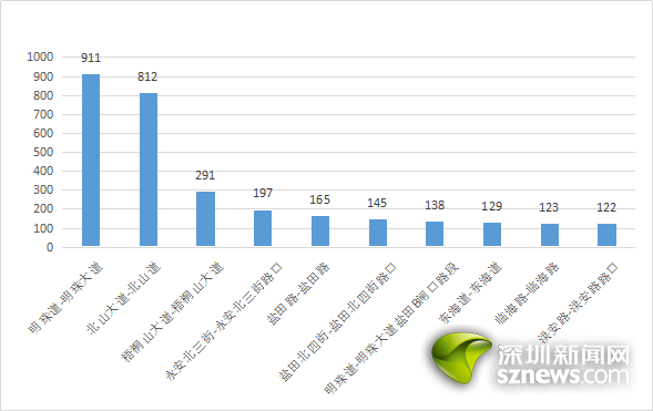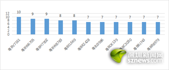 记者了解到,交警还公布了片区违法次数最多的10家公司,违法次数最多的10辆车以及违法次数最多的10个路段。相关数据显示,深圳市德诚达物流有限公司违法次数高达73次,排名第一;深圳市华亿通运输有限公司违法次数达32次,排名第二。违法次数最多的路段中,明珠道排名第一,北山道排名第二。