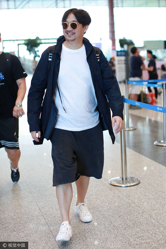 8月17日,黄磊乐一身休闲装现身机场,梳中分头见镜头笑呵呵,进关时还挥手再见,为人亲切可爱。