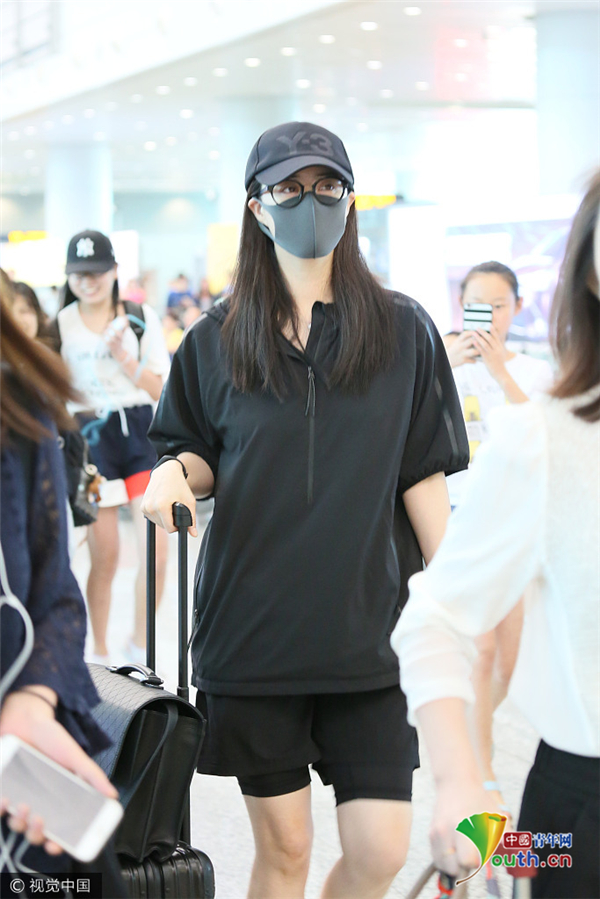 蒋欣全黑装显身材纤细瘦 双手插袋似跳瘦身操