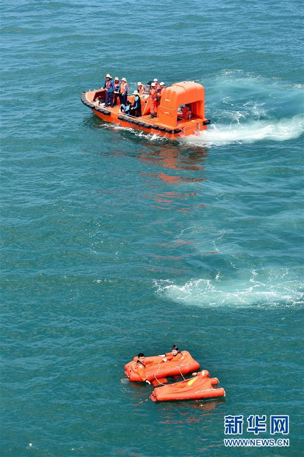 8月21日,航天员(前)出仓后在海上漂浮等待救援。