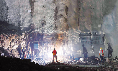 为最大限度地减少对长城的扰动,项目部采用精准电子雷管减震技术,精细化分段,逐孔起爆。经过反复计算,将震速控制在0.16厘米/秒左右,每爆破一次只相当于在长城上跺一下脚。2016年3月开工以来,这里已经爆破了4500多次。在地下物流、交通组织方面,施工单位运用BIM等技术,进行人车定位、智能指挥,实现洞内无线网络全覆盖,监测360度无死角,提高了作业和管理效率。