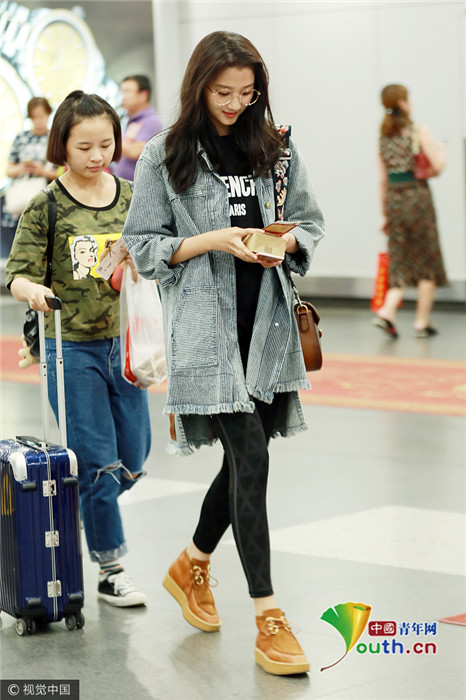 关晓彤穿牛仔外套拉风 发丝飞舞回眸初显小女人媚态