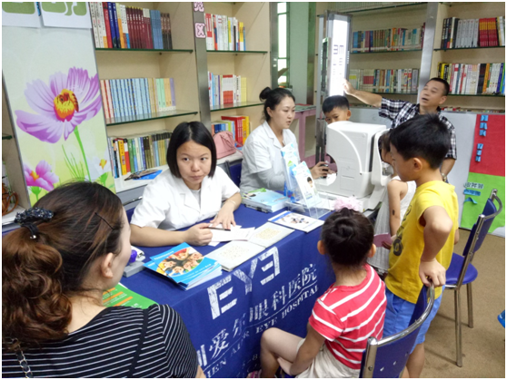 在活动中,由于有上次的经验,小朋友们都对一些仪器的使用都熟悉,因此积极配合三位医师的检查。检查中,青少年先是在视力表前检查视力,然后是等待眼部验光,最后由医师结出诊断结果,给出建议,耐心解答家长们的问题。