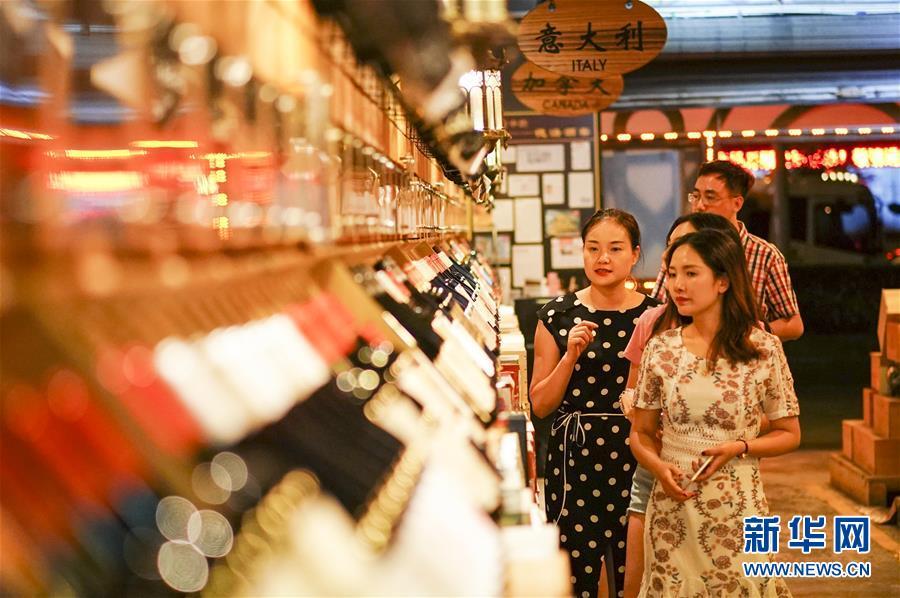 8月22日,在重庆市渝中区的德法酒窖内,几名重庆市民一边享受这个防空洞特色主题酒窖独有的清凉,一边欣赏感受红酒文化。