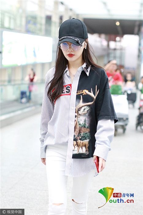 时尚感UP!李小璐衬衫半掖亮相 与人热聊上演回眸杀