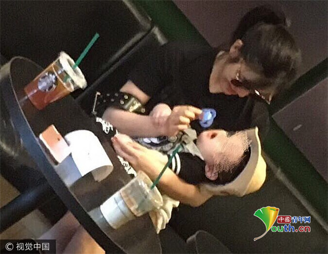 陈妍希饮品店逗娃笑不拢嘴 “小星星”超Q超萌