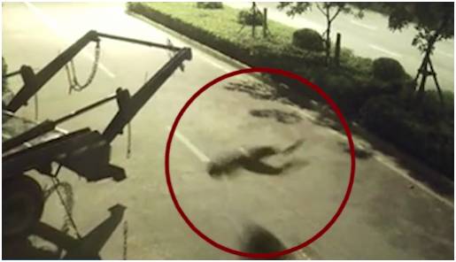 8月20日,广西北海,一辆垃圾车往辅道倒车,车外悬挂着两根铁链。一辆电动车驶过,驾驶员被铁链挂住颈部,凌空翻起重重摔倒在地上,伤重病危。