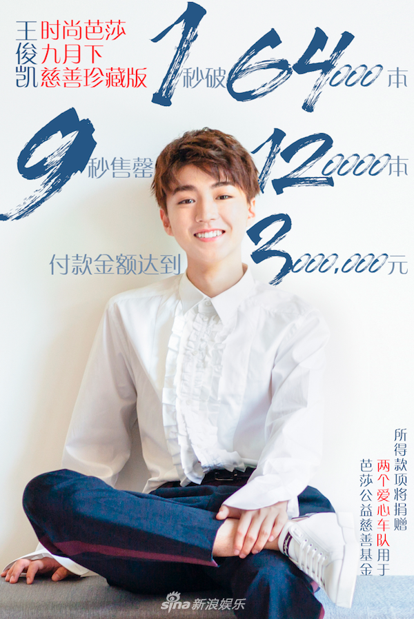 王俊凯登金九封面 9秒售罄销售达300万创纪录