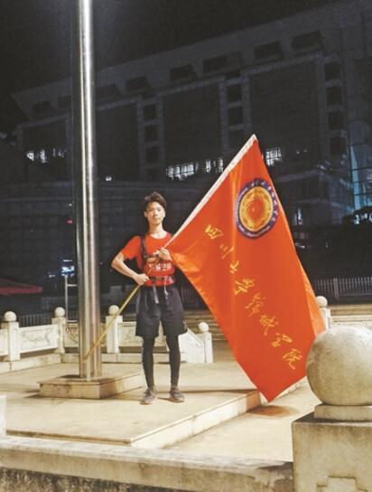 出发前一个月,下定决心要在暑假跑步到深圳的廖兴,将路线计划已经规划了出来:途经哪些城市,每天跑多少公里,他看着地图,提前一一标注。为轻装上阵,他只背了个轻质跑步包,装上必备的洗漱用品、三套衣服、充电宝和三台手机,因为怕路上遇到不测,手机还特意放在不同的地方。热心的朋友也帮他准备了防晒霜、面膜等护肤品。就这样,扛着一杆“四川大学锦城学院”的校旗,7月7日一早,这位血气方刚的小伙子出发上路了。