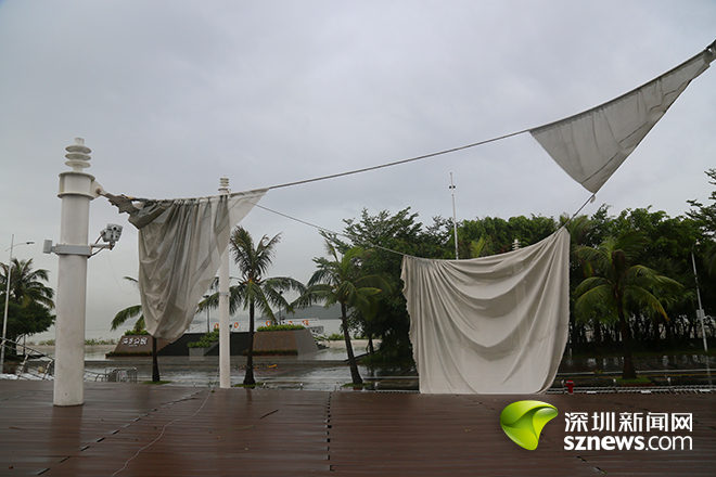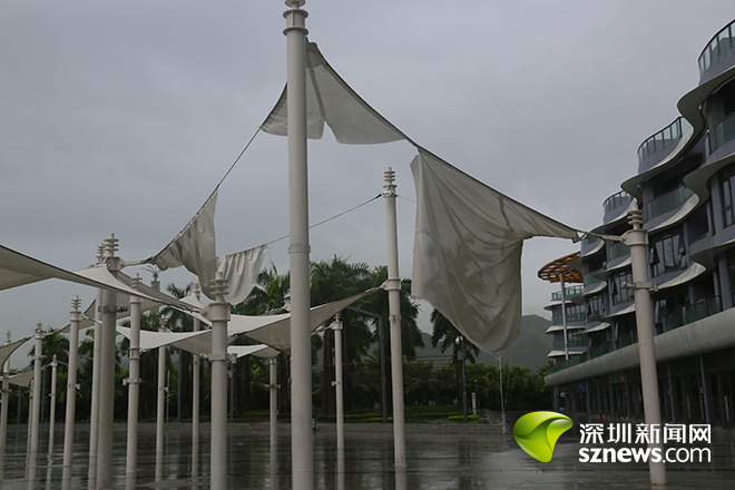 深圳新闻网讯 (记者 潘峰 邓雪婷)8月28日,家住在盐田中央公园附近的市民向记者反映,受今年第14号台风“帕卡”影响,位于盐田中央公园海浪木平台上的几处“帆船”造型遮阳雕塑遭到损坏,希望有关部门能尽早修复。