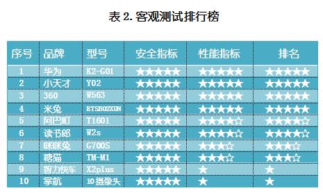 客观测试排行榜前五名:华为K2-G01、小天才Y02、 360 W563、米兔ETSB02XUN、阿巴町T1601