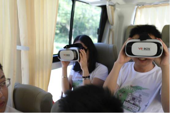 市民在大巴上一边通过VR眼镜领略了港中大(深圳)的全貌,