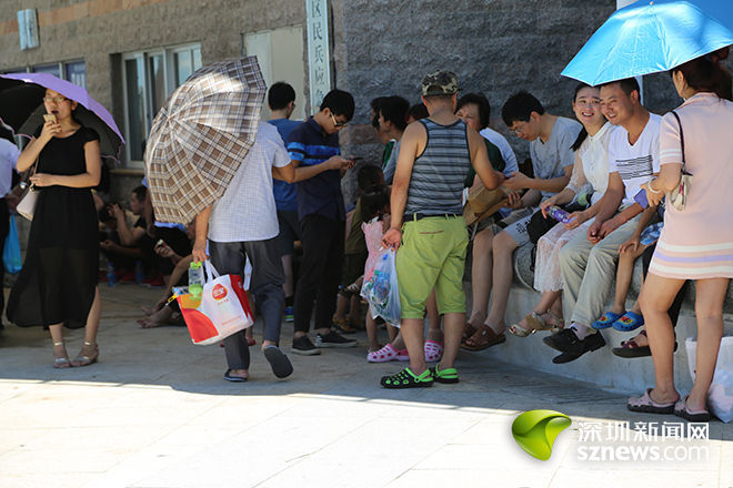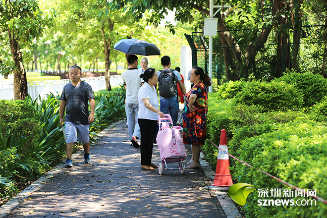 29日上午11时许,记者在大梅沙海滨公园咨询室了解到,已有不少游客早早就在公园门口排队等候入园。距离公园入口不远处,来自宝安区的陈先生带着一家人在树荫下乘凉,等待入园玩水。“大梅沙是深圳的标志之一,爸爸妈妈过几天就要回老家了,回去之前带着他们来感受一下深圳美丽的海滩。”陈先生说。