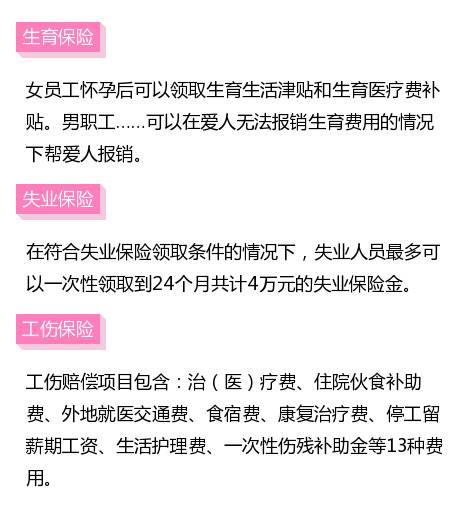 除了住房公积金和退休后领养老金外,个人+单位缴纳的医疗保险、生育保险、失业保险和工伤保险通通都是福利!