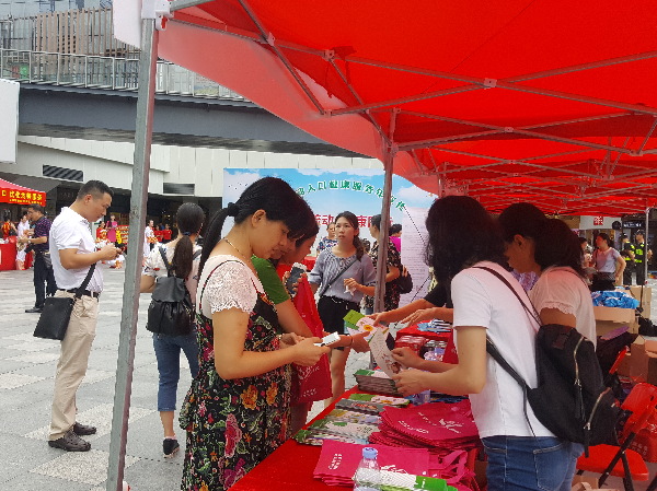 深圳新闻网讯 为深入贯彻落实全国卫生与健康大会、中国计生协第八次代表大会精神,坚持以人民健康为核心,围绕“健康盐田”建设,中英街计划生育协会在盐田区卫计局的组织领导下,于8月25日下午,在壹海城下沉广场大力开展流动人口健康服务年宣传活动。