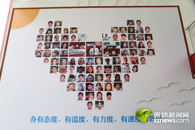踏进校园,宽敞明亮的建筑风格给人心旷神怡的第一印象。四栋教学楼平行相间、整齐有致。一座连廊将这四栋教学楼连接起来,学生们可以通过连廊自由穿行。徜徉在教学楼走廊,灿烂的阳光把洁白的墙面和敞亮的教室照得明亮。学校的操场跑道由塑胶铺设而成,中间是绿油油的自然草坪。在操场上,抬头即可望见不远处郁郁葱葱的梧桐山。鉴于操场和教学楼在水平面上有地势的落差,学校因地制宜,将连接操场与教学楼的一排排阶梯设计成花坛,花坛上则种满了错落有致的鲜花。